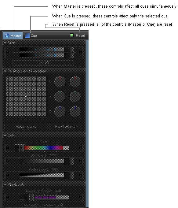 - Live Control tab - Master and Cue controls