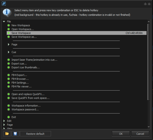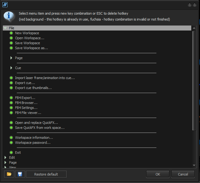 BEYOND allows you to assign your keyboard shortcuts for various menu functions.
