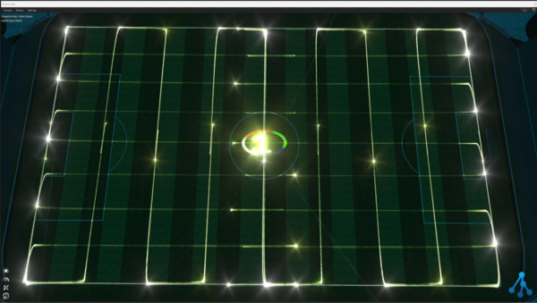 One thing people may want to do is use multiple lasers to create one large zone of output sometimes known as a “canvas”. This zone file uses 8 lasers together to create a large format display for a sports stadium.